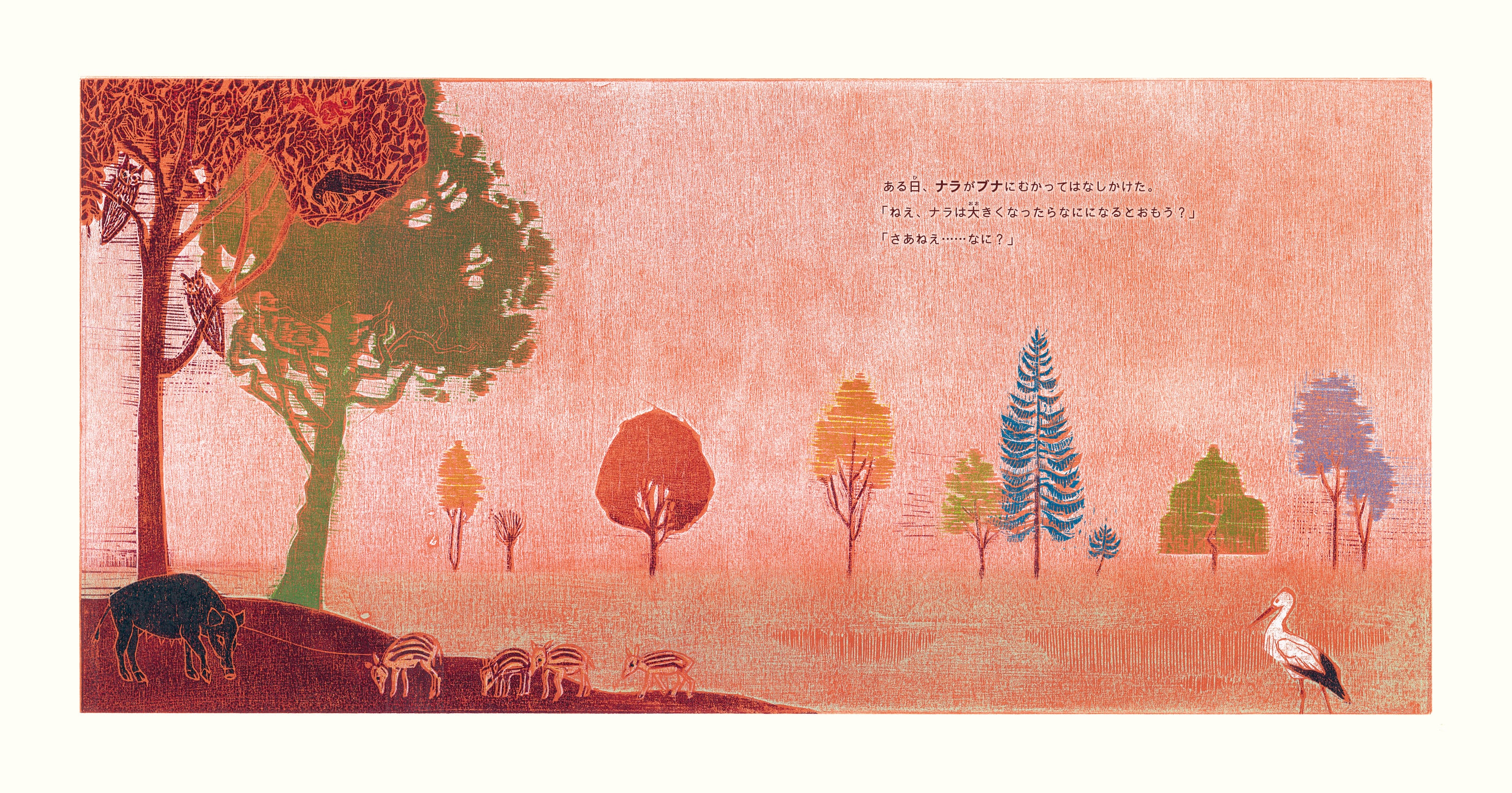 自分の未来をどう夢見るのかは無限に自由である、ということの楽しさと、人生・自然がいかに儚いものであるかということの切なさが伝わる、色とりどりの木版画で表現された静かで美しい絵本です