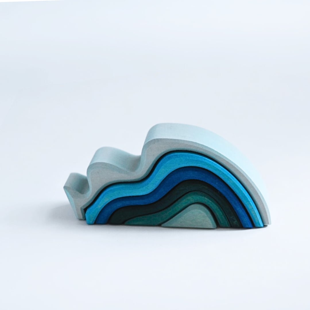 水や波をモチーフにした、グラデーションが美しいつみ木です