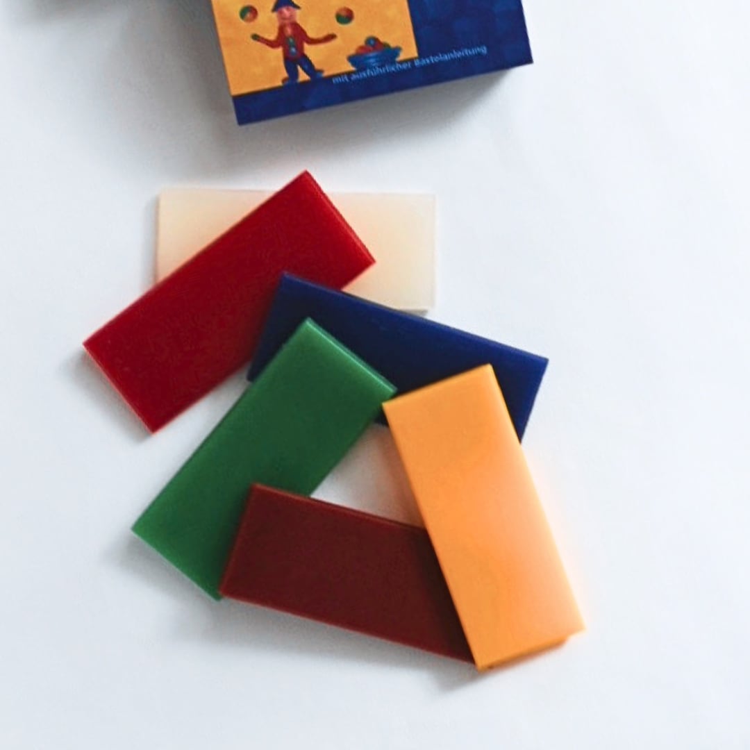 シュトックマーのみつろうクレヨン、みつろう粘土、透明水彩絵の具、デコレーションワックスは安全の証として厳しい食品規格に従って製造されています。使用している着色剤は完全に無害で溶け出したりせず、色彩が鮮やかで、半透明であり、耐熱であり、定着性が高く、褪色しないという厳しい基準から選択しています